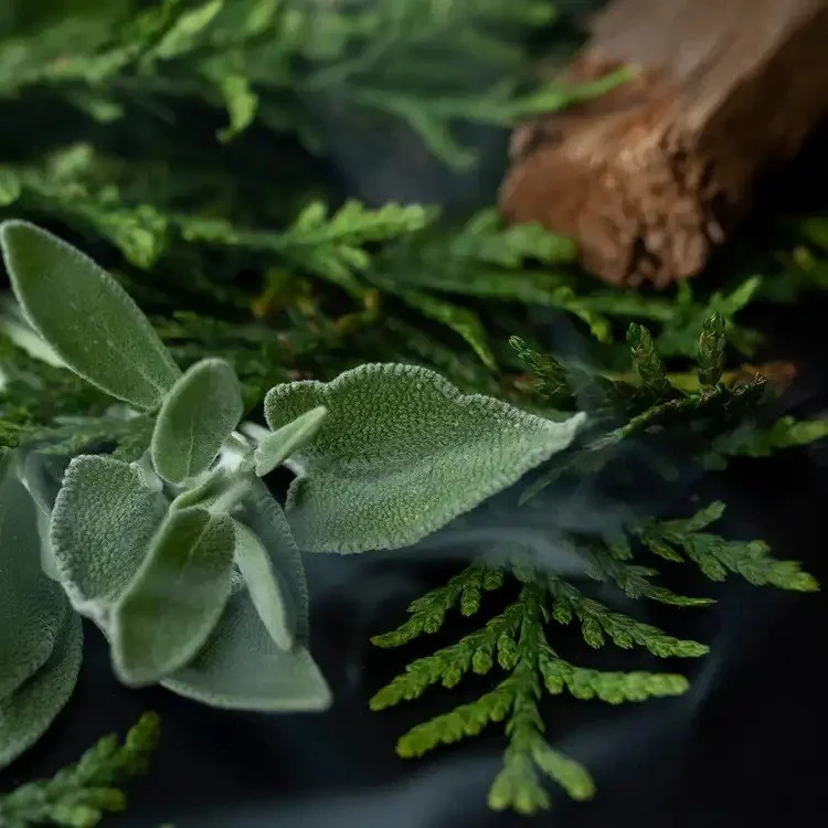 Sage essential oil is often used for its cleansing and clarifying effects, helping to dispel negative energy and support mental clarity. Cypress adds a grounding, woodsy aroma that promotes emotional balance and a sense of rooted calm.